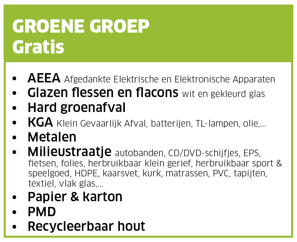 > Op de recyclageparken van Kortrijk Rollegem en Heule mag geen Restafval (zakken) en GF(t)/keukenafval worden aangeboden. verkocht.