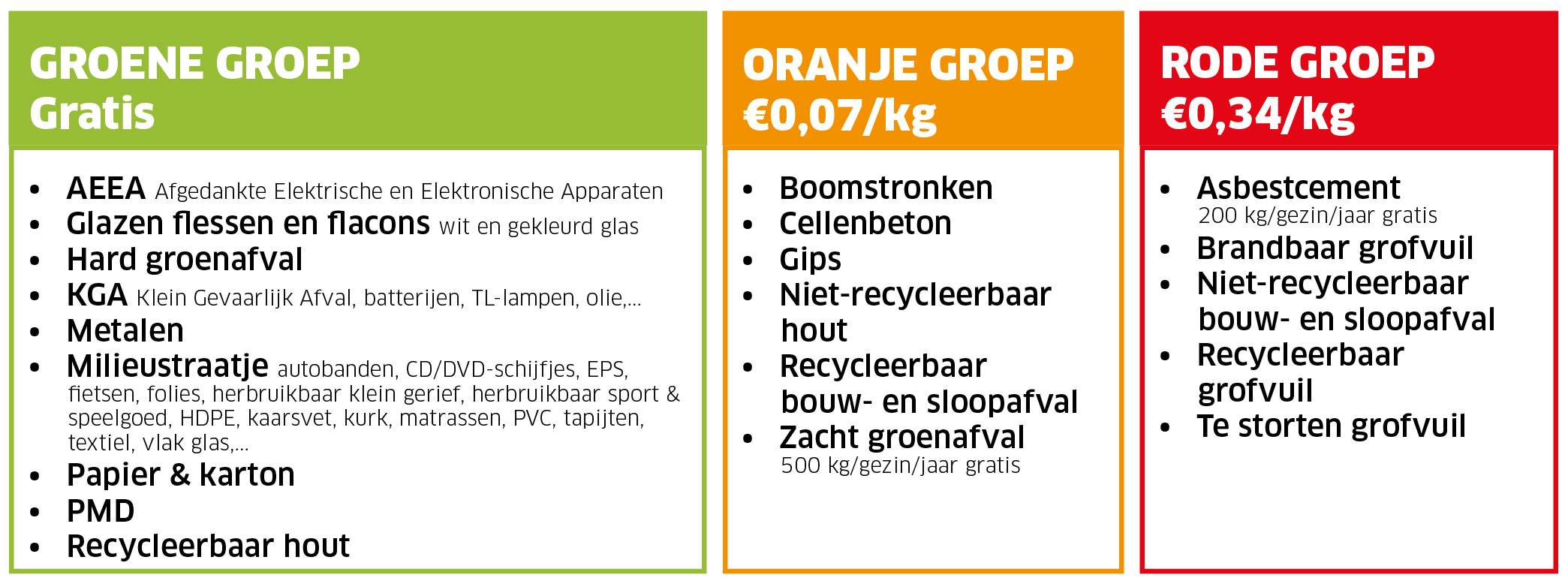 Voor alle informatie rond openingsuren en tarieven, ga naar de pagina Intergemeentelijke recyclageparken.
